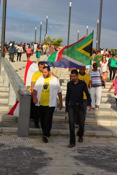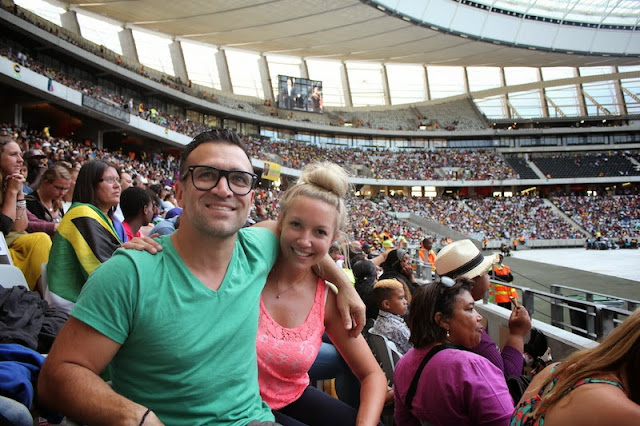 Sox and I went to the Cape Town stadium around 6pm and left at around 9pm. The energy was electric and I just looked around the stadium at a sea of bright colours. I love our South Africa flag – it is colourful and vibrant. I loved singing songs and dancing with people from all races and walks of life. United.