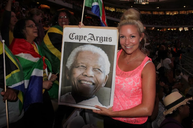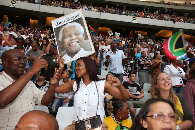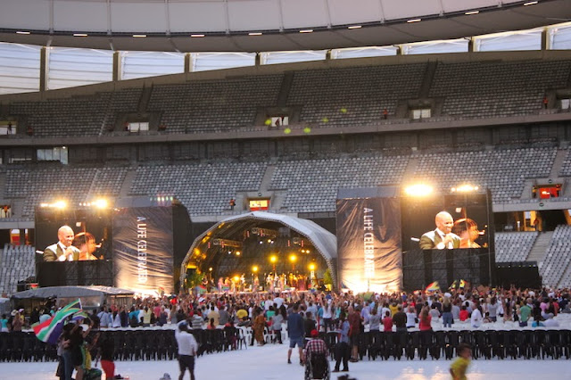 Last night the Cape Town stadium held a memorial to celebrate Nelson Mandela’s life. The memorial held in Johannesburg the day before was attended by world leaders, royalty, celebrities and broadcast around the world. There were a few embarrassing moments, like the booing of Zuma – erm, not the time nor the place, having to ask people to have discipline and respect and stories coming out that the man doing sign language did a shocking job.