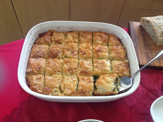 After lunch, we opened up gifts under the tree and then enjoyed tea with Galaktoboureko dessert.