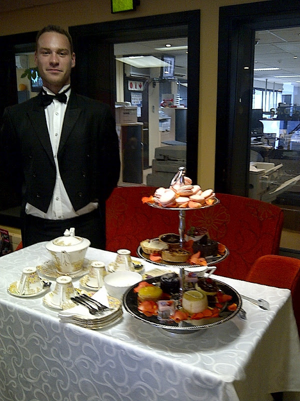 Nothing like having High Tea come to you with a butler. Mark Pilgrim and I were spoiled by Total Exposure. They arrived at the 94.7 studio with different teas, french pastries and cakes.It’s all to promote the new TV show starting on BBC called Downton Abbey. Apparently it cost nearly 1 million pounds to make each episode.