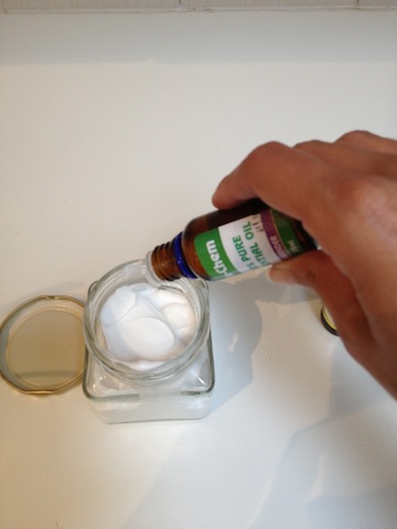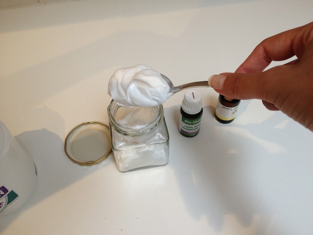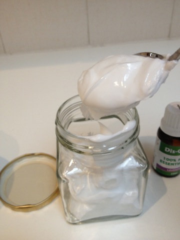 Add the Lavender essential oil – again I added 13 drops. I suggest you don’t use too many – essential oils are powerful and this is to create a soothing affect, so you don’t want the smell to be too overpowering. Perhaps 10 drops of each is best – I may have overdone it with 13. Oops.