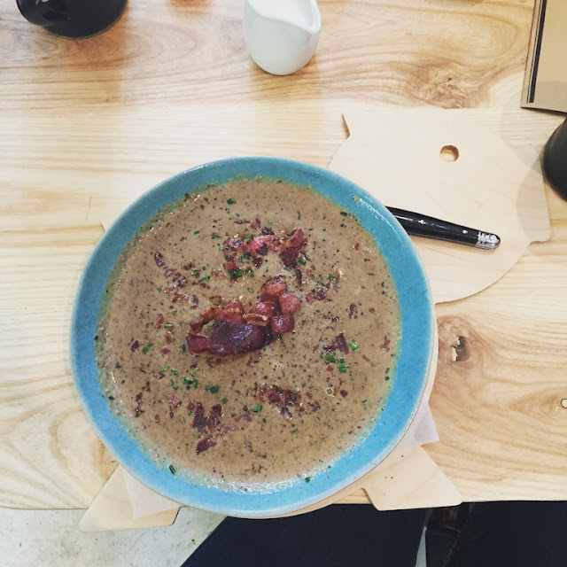 I finally got to visit Bacon on Bree for a business meeting and a delicious bowl of mushroom and bacon soup! When it first arrived, besides loving the cute piggy board and beautiful bowl it arrives in, I thought it was massive and that I’d never get through all of it.