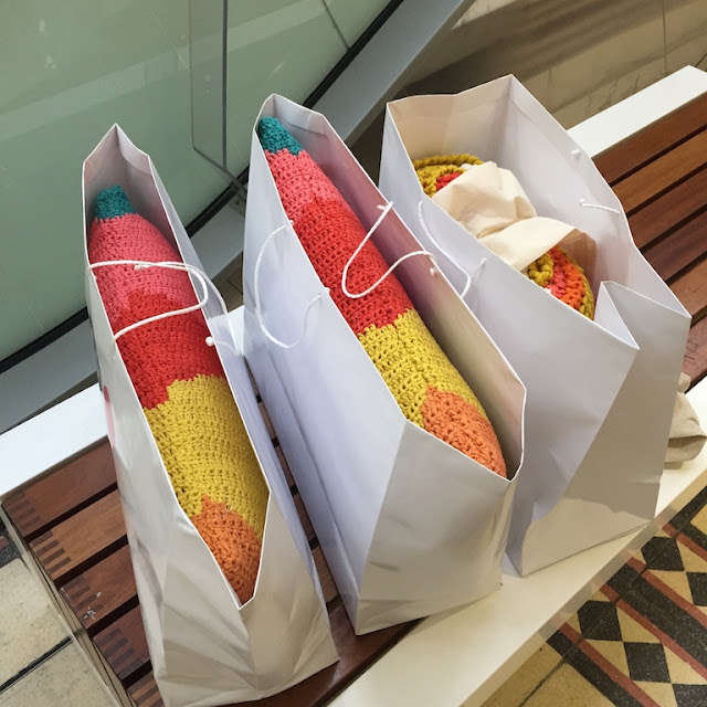 I used my gift voucher on these 2 hand knitted colourful cushions and bought the hand knitted blanket.