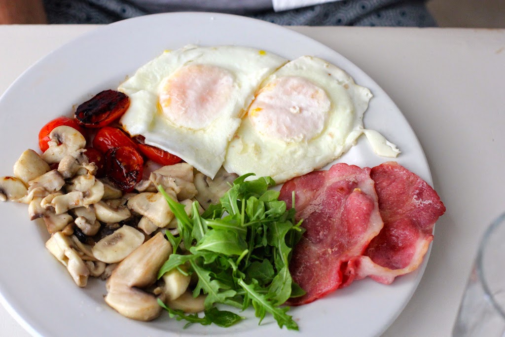 We ordered our coffees and Sox ordered the full Banting breakfast, whilst I ordered the Banting Shepherds Pie with cauliflower mash topping and side salad. Salivating.