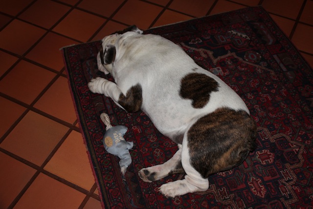 He still has his very first toy. I think I still see him as this puppy below, but when I see him lying next to the toy now, I can’t get over how big he is!