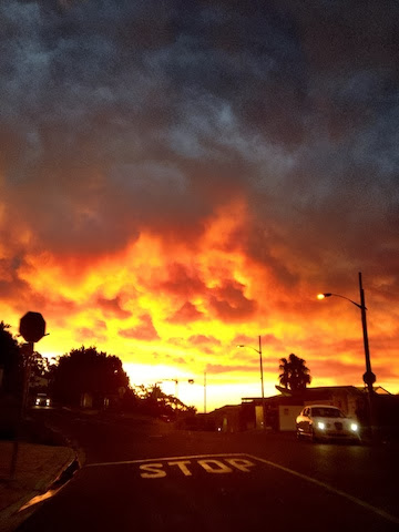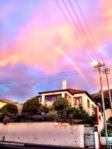 On my way home, I was absolutely blown away by the incredible sunset last night. In land the sky was just pink and purple with a beautiful rainbow overhead and when you looked out to sea, the sky looked like it was on fire.