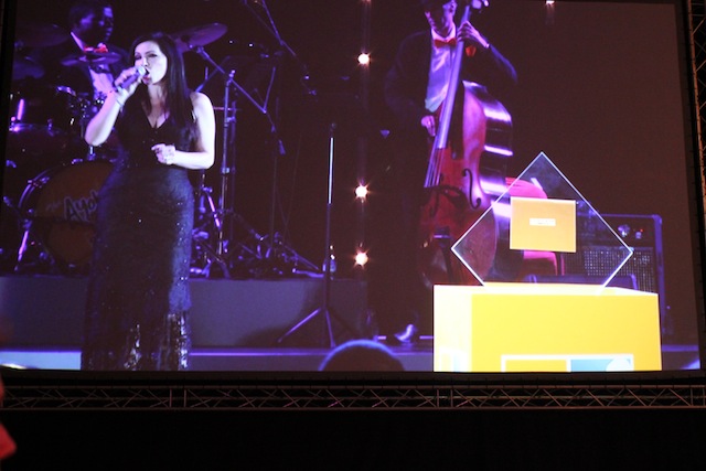 | She sang an opera song to smash the glass holding the envelope with the winner of Commercial Station of The Year |