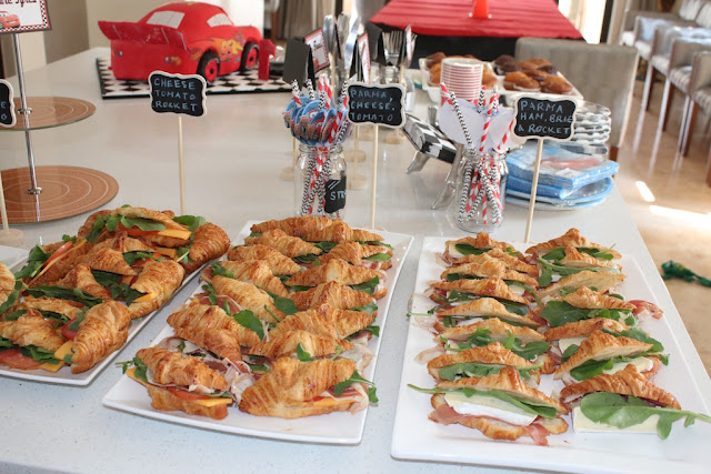 K and I had an operation line going of cutting 50 mini croissants open and then filling them with toppings.