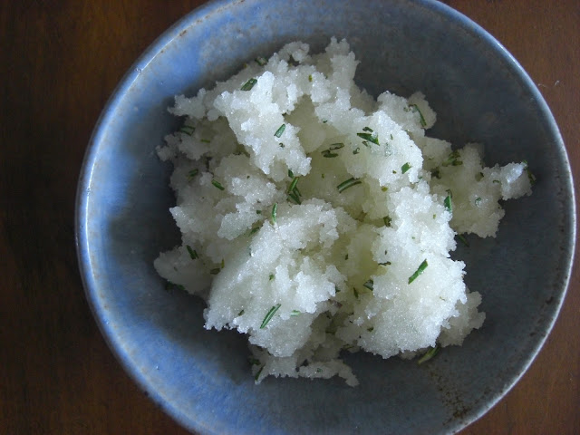 For my body, I love olive oil and sea salt or even brown sugar. If you don’t want something so oily, use aqueous cream… it will absorb into the skin and then you just wash off the salt or sugar.