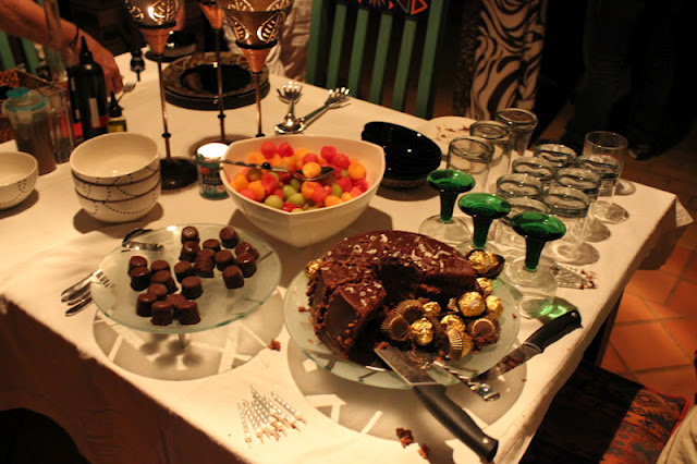 For dessert I wanted to serve something light after the pizza, so I dished up melon balls with Italian kisses and a Chocolate Fudge chiffon cake that was airy and light. Delicious.
