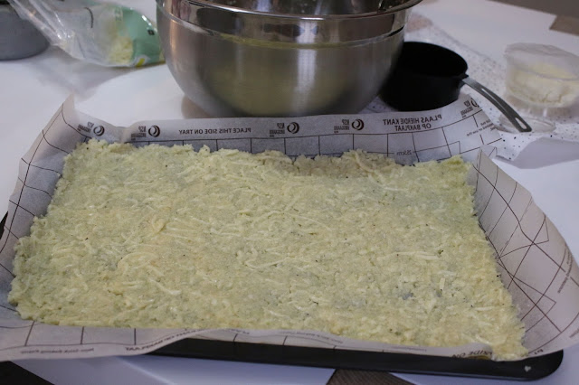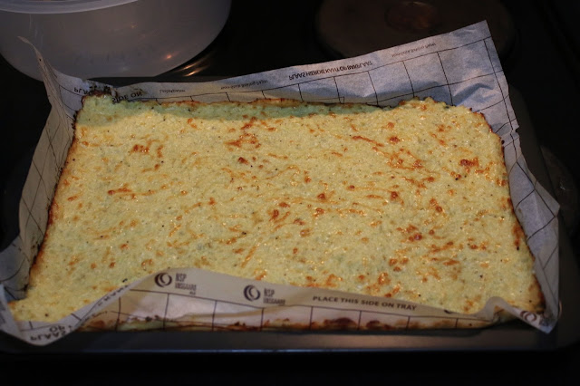 Smooth the cauliflower mixture as thinly as you can, without leaving in gaps.