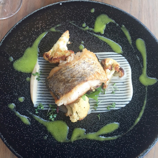 I had the seasonal green listed seafood (fresh hake), fresh estate herbs, grilled fennel and chive butter sauce with roasted vegetables (minus the aubergine – I’m allergic!)