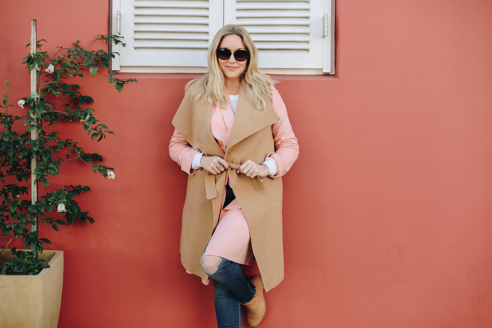 In Cape Town, the weather really is 4 seasons in a day, so layering is your friend! I layered the Daniella Coat with the sleeveless Marilize Coat in Tan! I felt warm, cosy, trendy and I’ve never been complimented more. In fact, my cheeks were blushing so much, I matched the wall!