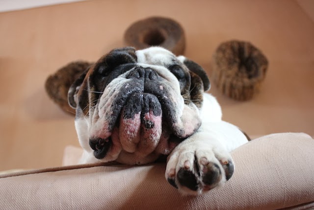 He is such a character, he makes my whole family laugh and he is one of the most spoilt bulldogs around. My mom and dad are so smitten it’s hilarious. He owns the couch in our house – in fact half his photos are there.