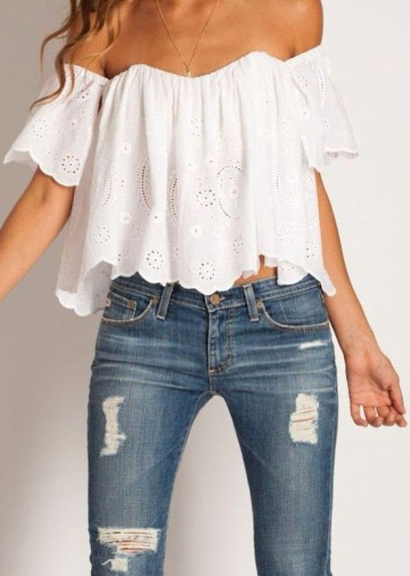 The other Summer trend I’ve noticed is all off the shoulder tops and dresses. I love how romantic and feminine this look is. It can be dressed up or down and it can be romantic or edgy, depending on how you dress it.