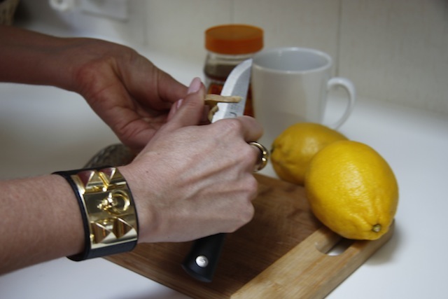 Cut a lemon into quarters. 1 lemon will give you 4 cups of this tea.