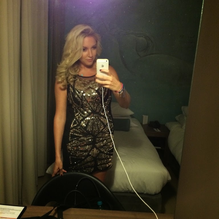 Back to the hotel room to change into my black and gold Lipsy dress. *But first…let me take a selfie*