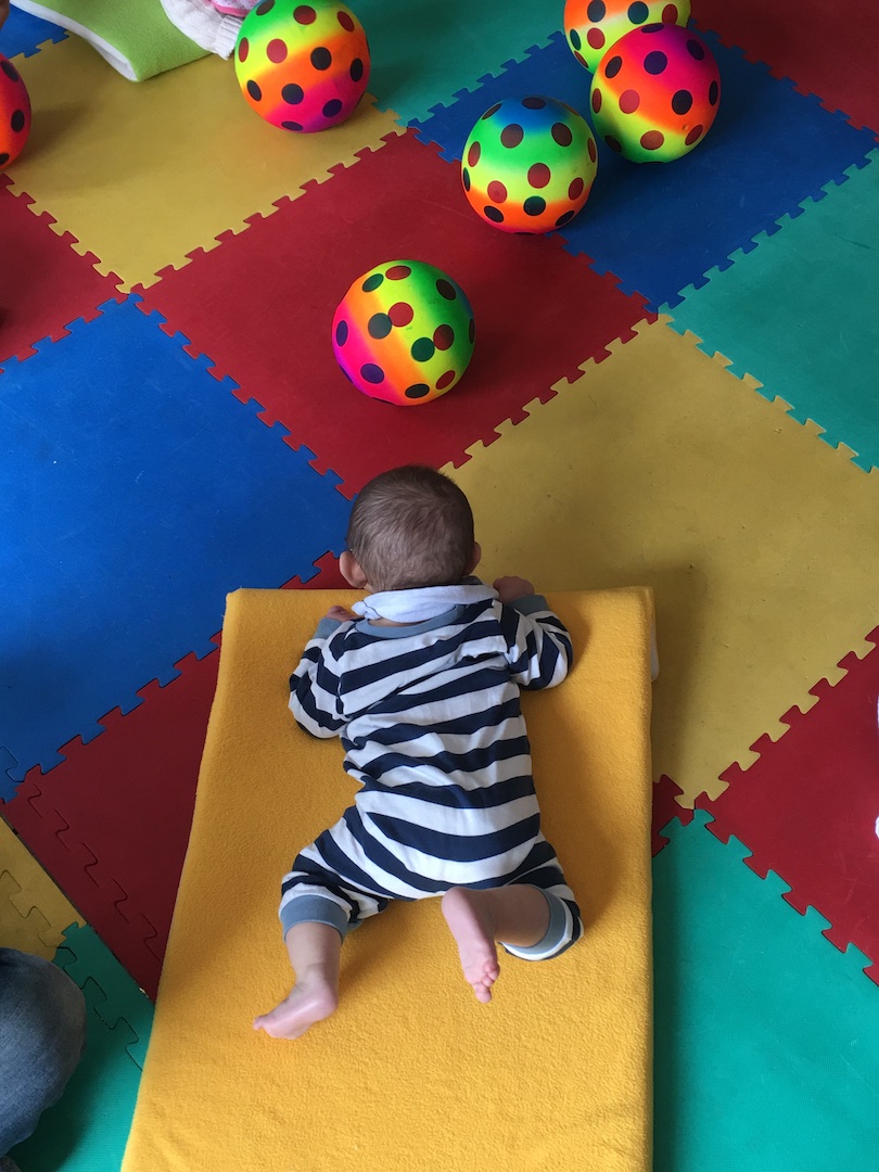 We’ve been going to “Mommy and Me” play classes once a week and it’s the sweetest thing to see him play and develop. At the end of the class, he is EXHAUSTED and passes out.