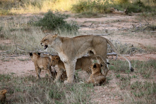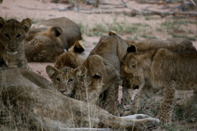 Apparently the pride were off on the hunt and had left the 4 cubs alone.