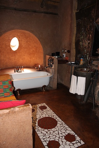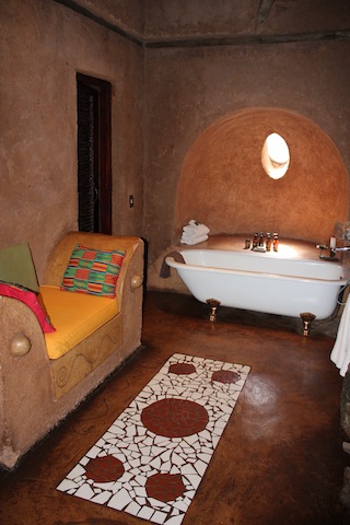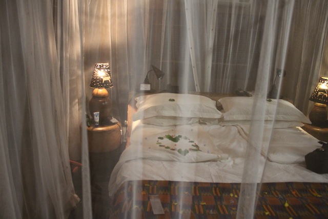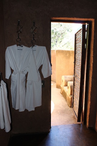 The room was African Romantic … There was Mosquito nets draped over a very comfortable bed, an outdoor shower, a claw bath with gorgeous products to indulge in, our own outside deck and a view of the river.