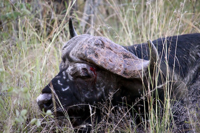 | AN OLD MALE BUFFALO WOUNDED – LITERALLY KICKED OUT OF THE HERD-SO SAD 🙁 |