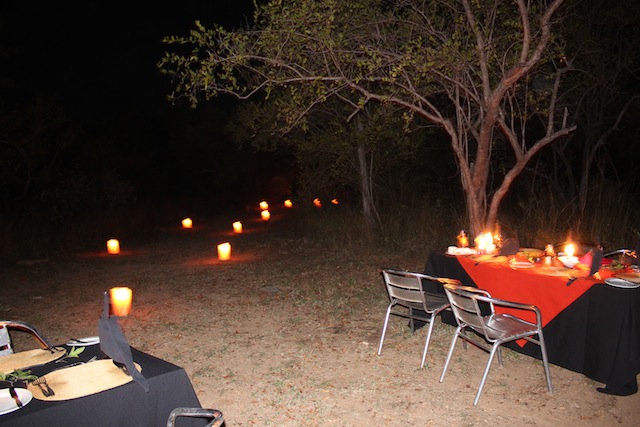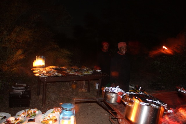 | SUNDAY: DINNER IN THE BUSH AFTER OUR GAME DRIVE |