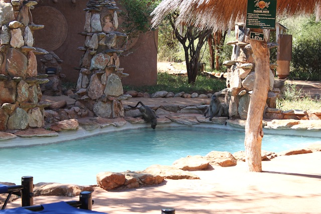| BABOONS DRINKING FROM THE POOL |