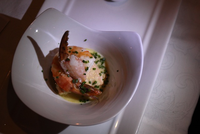 Now the dish it was supposed to be paired with was a light seafood stew of Scottish salmon and prawn steamed in a fish cream… I couldn’t eat this, which is heart breaking for me. I adore prawns, but recently I have become allergic thanks to a developed Iodine allergy.