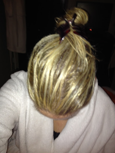 I applied the oil from scalp to root on my dry hair (you can do it on wet hair, but I wanted the oil to sink in completely) and left it in overnight… (You can wrap you hair up or just cover your pillow with an old towel)