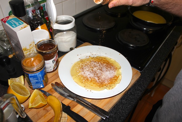 He even got involved in the cinnamon sprinkling, until I sent him back to bed with a variety of pancakes and a grin on his face.