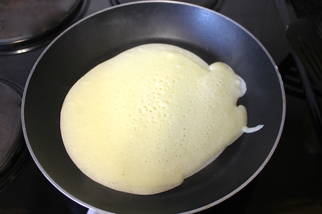 I always find it easier to pour the batter into a jug so that it is easier to pour into the frying pan.