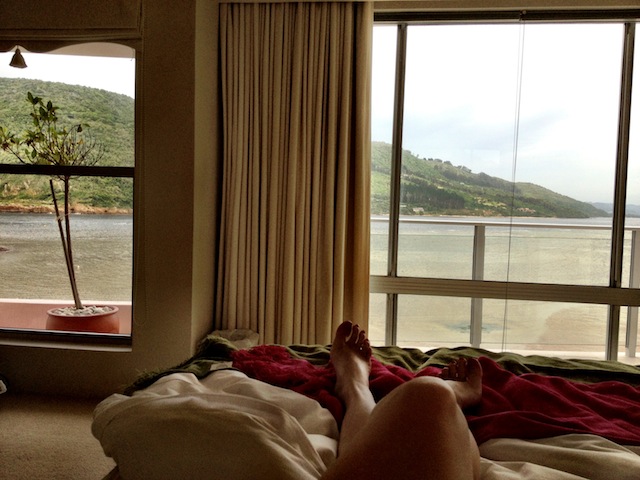 Sleep came quickly and when I woke up in the morning I was amazed to see exactly where I was. Because we had arrived at night, I hadn’t really seen the view. I stayed in the Ivory Bay room that had a 180 degree view of the Knysna Lagoon, a huge bathroom with jet shower and my very own walk-in wardrobe… cue Sex in the City music.