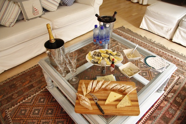On our arrival, oysters, cheese and champagne had been laid out to welcome us. Stunning.