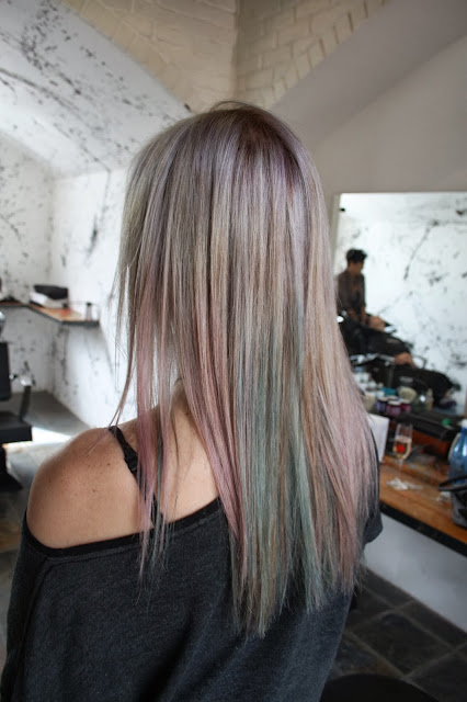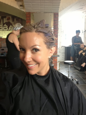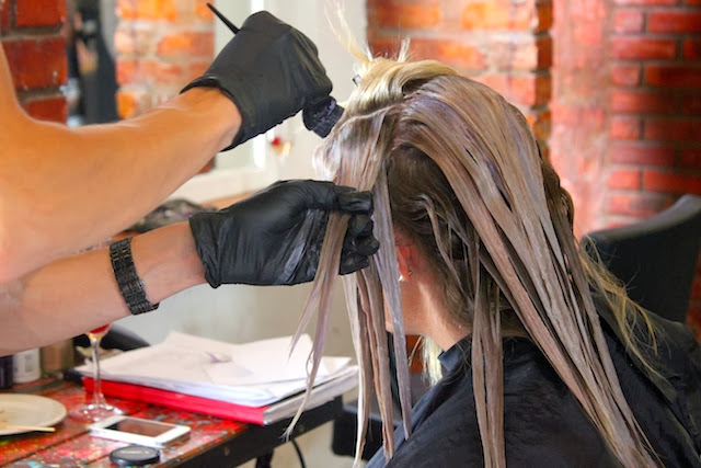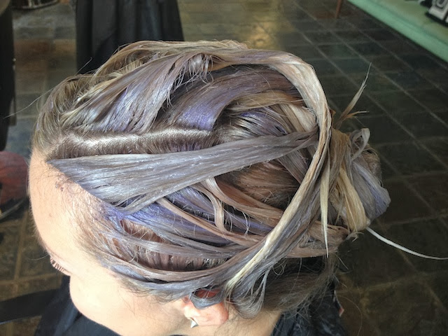 I had taken a few pics and popped them up on Instagram – some were convinced I was adding blue and purple streaks into my hair – which actually would have been fun – but I wasn’t. I had 3 types of blonde painted on – dark, medium and light to create movement and to make it look natural, for example, we applied the light to where the sun would kiss my hair. The violet colours prevent the blonde going orange.