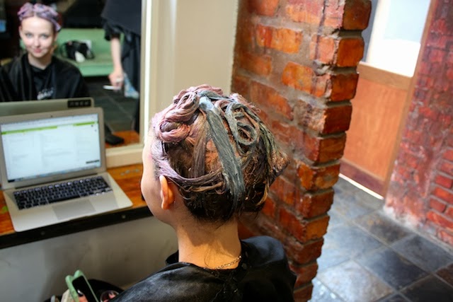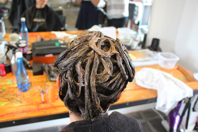 It looked really cool. Again it was amazing to see that Flo would apply the 3 colours and then instead of wrapping up foils he just rolled it the hair up into a funky design and I waited for 15 minutes.