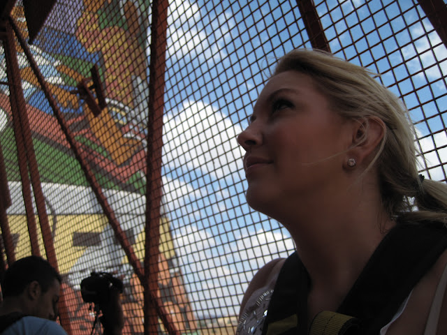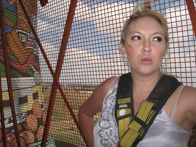 I was listening to the guys harnessing me up properly and they said to me, that they would rather BUNGEE JUMP than do the internal swing, which is what I was about to do. They said the internal jump was far scarier. GREAT. Good to know BEFORE my jump. I must have asked the guys to check my harness about 12 times.