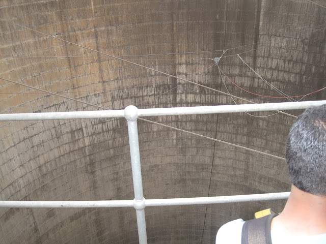 It was SHOW TIME. I had to walk a plank into the dark cooling tower and then turn back to camera, say a link and JUMP.